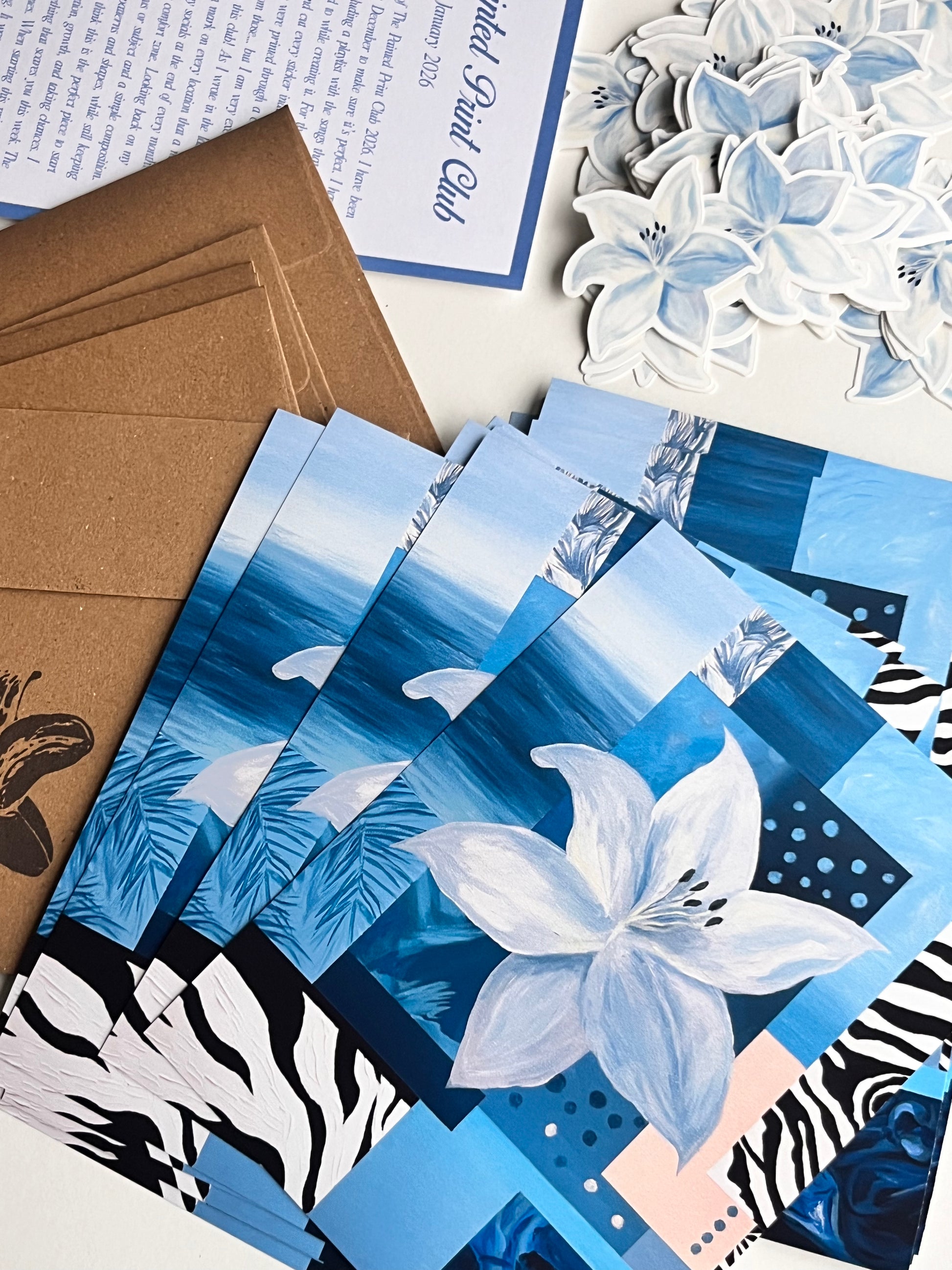 Receive a hand signed 5x7 print + sticker delivered to your mailbox each month!